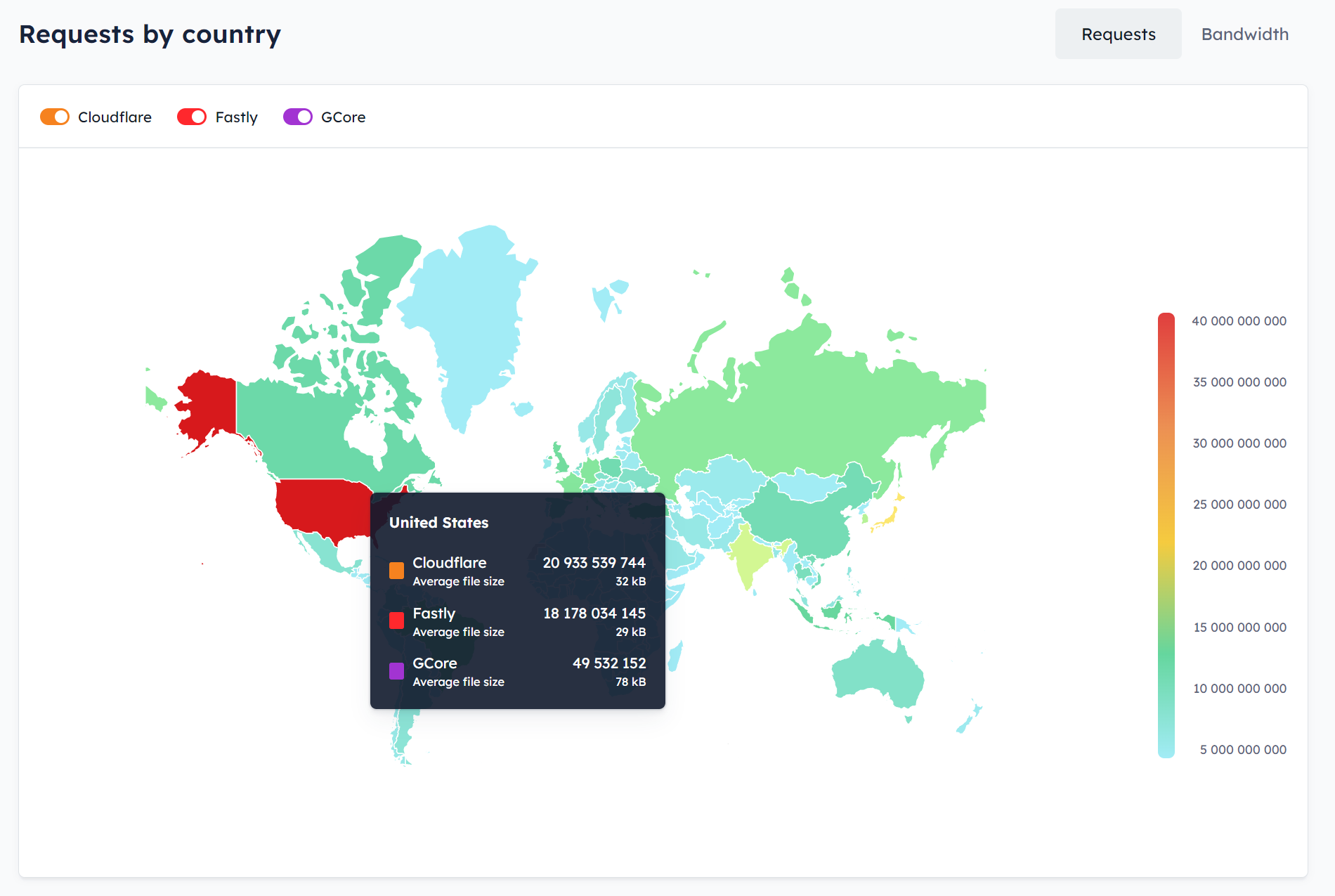 - New network stats endpoints, which provide network-wide information about jsDelivr usage.